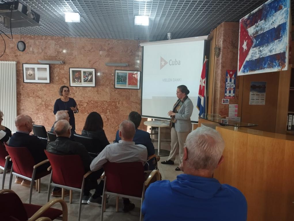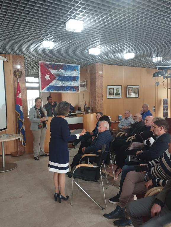 Die Botschafterin hielt in Begleitung ihres Arbeitsteams vor den Gästen einen Vortrag über die Geschichte, Kultur und die wichtigsten Aspekte der bilateralen und kommerziellen Beziehungen Kubas sowie über die Arbeit der diplomatischen Vertretung in Deutschland.