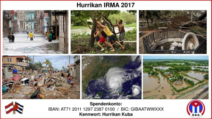 Die Österreich-Kubanische Gesellschaft (ÖKG) überwies eine zweite Geldspende nach Kuba in Höhe von 20.000 Euro als ein Solidaritätszeichen wegen der vom Wirbelsturm „Irma“ verursachten Schäden vom 7. bis 10. September im karibischen Land.