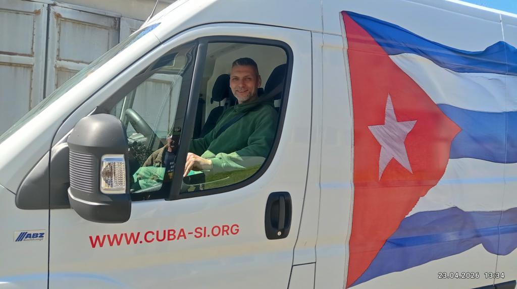 Berlin, 24. April 2026.- „Hier spricht Cuba Si Gera“. So kündigt Reiner Markgraf, Vorsitzender der Regionalgruppe Gera der Solidaritätsorganisation „Cuba Sí“ in Deutschland, stets die Solidaritätsaktionen an. Aber sie redet nicht nur, sondern handelt auch!
