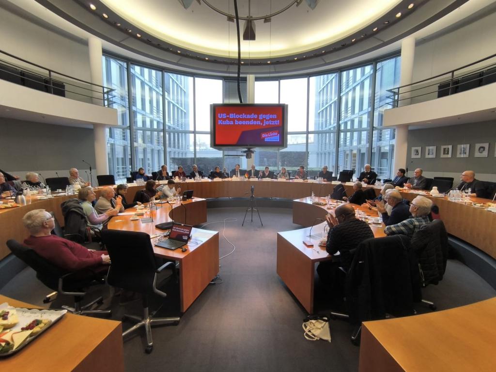 Berlin, 5. Dezember 2024 - Unter dem Titel „US-Blockade gegen Kuba beenden, jetzt!“ fand am 2. Dezember ein von der Partei Die Linke organisiertes Fachgespräch zu Kuba und zur Forderung nach Aufhebung der US-Blockade gegen die Insel im deutschen Bundestag statt. Als besonderer Gast nahm Homero Acosta, Sekretär der Nacionalversammlung der Volksmacht und des kubanischen Staatsrates, als Vertreter Kubas teil.