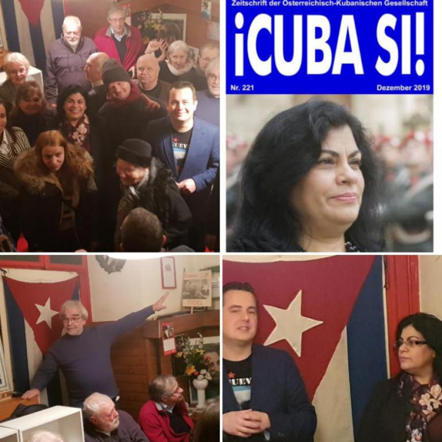 An der Veranstaltung wurde die neue vierteljährliche Ausgabe des ´Zeitschrifts Cuba Sí! vorgestellt, eine Publikation der ÖKG, die ein Interview mit der kubanischen Botschafterin und einen umfassenden Bericht über die Auswirkungen der US-Blockade gegen Kuba seit fast 60 Jahren enthält.