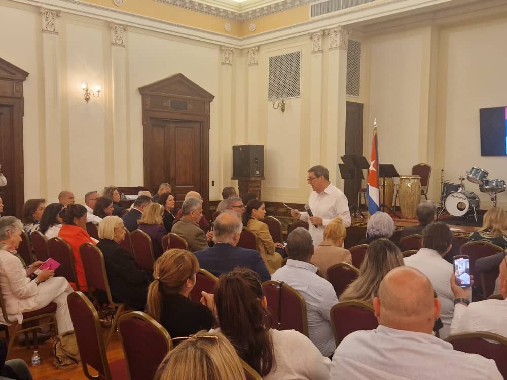 Der kubanische Außenminister dankte der Bemühungen einer großen Gruppe kubanischer Staatsangehöriger in den Vereinigten Staaten, die ihre öffentlichen Aktionen zur Unterstützung der Aufhebung der Blockade und der endgültigen Streichung Kubas von der Liste der Staatssponsoren des Terrorismus fortsetzen, Maßnahmen, die sich direkt auf die Lebensqualität und die Kaufkraft der Familien auswirken. Er würdigte auch die Arbeit von Vereine und Kubanern, die in den Vereinigten Staaten leben, und ihre humanitären Projekte, die von der tiefen humanistischen Gesinnung zeugen, die sie kennzeichnet.