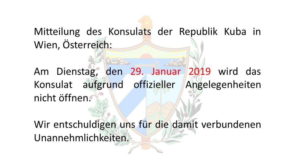 Mitteilung des Konsulats der Republik Kuba in Wien, Österreich