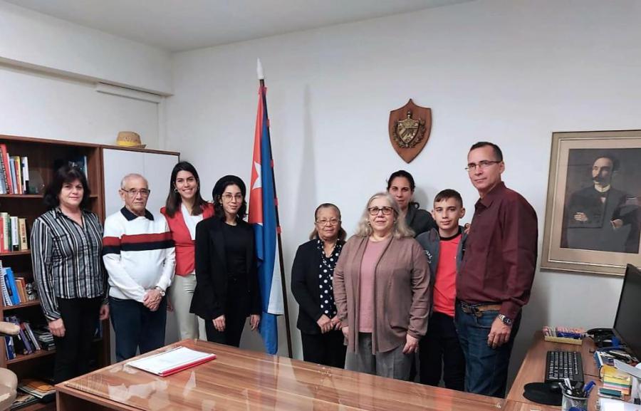 Der Botschafter Pablo Berti und die Mitglieder der Mission bekräftigten ihr Bekenntnis zu den Prinzipien der Außenpolitik und der kubanischen Revolution, inspiriert von Martis Zitat: "La Patria es ara no pedestal" .