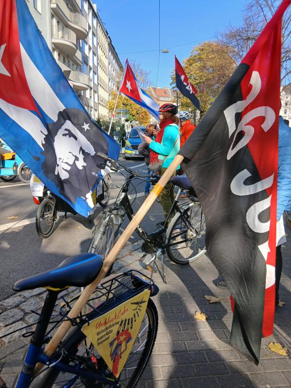 Berlin, 10. November 2025. – Am vergangenen Samstag, dem 8. November, versammelten sich nach Aufruf der Regionalgruppe Düsseldorf der Freundschaftsgesellschaft BRD-Kuba Aktivisten der Solidaritätsbewegung mit Kuba in Deutschland auf dem Bertha-von-Suttner-Platz in der Nähe des US-Konsulats in dieser Stadt, um mit einer Fahrraddemonstration gegen die Blockade der US-Regierung gegen Kuba und für die Streichung der Insel von der US-Liste der Staaten, die Terrorismus unterstützen, zu protestieren.