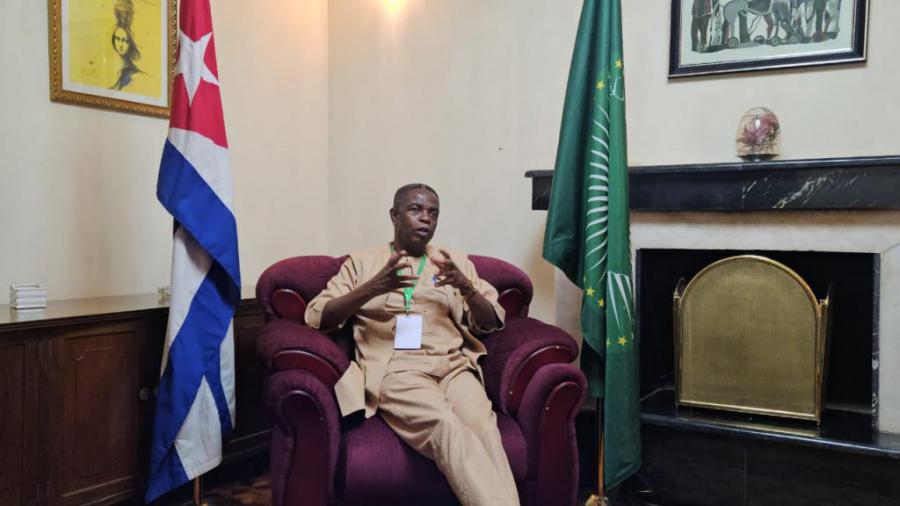 Addis Ababa, February 14, 2026.- Ghanaian journalist Kwesi Pratt Jnr, director of the Insight newspaper, Secretary General of the Socialist Movement of Ghana and a recognized friend of Cuba, gave statements to the Cuban diplomatic mission in the framework of his participation in the 39th African Union Summit, in which he condemned the new provisions to tighten the blockade against the Island.