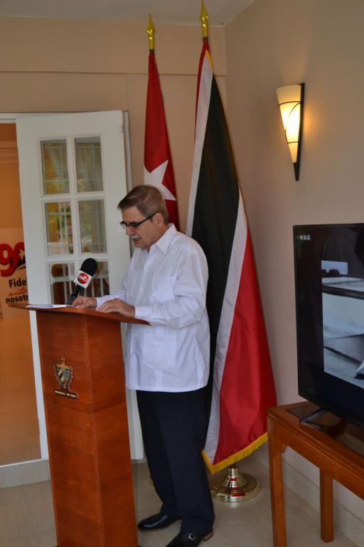 Port of Spain, August 14.- The headquarters of the Cuban Diplomatic Mission in Trinidad and Tobago served as the venue for an emotional ceremony in honour of the Historical Leader of the Cuban Revolution, Fidel Castro Ruz, on the occasion of the 92nd anniversary of his birth.