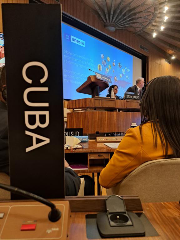 During its participation, Cuba underscored the importance of the Global Convention, in force since March 2023, as a historic step towards a global space for academic mobility based on equity and the fair recognition of qualifications, highlighting its complementarity with the 2019 Regional Convention for Latin America and the Caribbean. The delegation shared concrete progress in the region, including the formalization in Havana, in February 2024, of the CINALC network as the technical arm of the Regional Convention, as well as the development of common guidelines that promote transparency and the harmonization of systems.