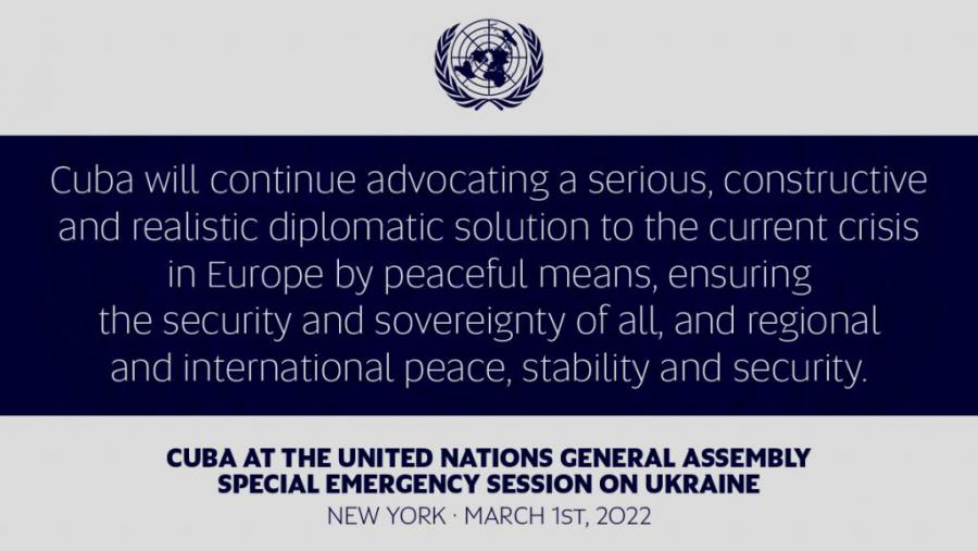 Last 26 February, the Cuban Government issued a Statement on the events in Ukraine, clearly adopting a stance in favor of a solution that guarantees the security and sovereignty of all and addresses legitimate humanitarian concerns.