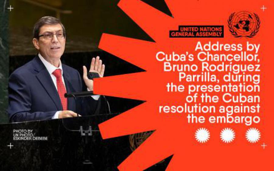 On behalf of my country and its honorable and generous people that resist and heroically fight its way to progress, I submit draft resolution A/75/L.97 “Necessity of ending the economic, commercial and financial blockade imposed by the United States of America against Cuba” to your consideration.