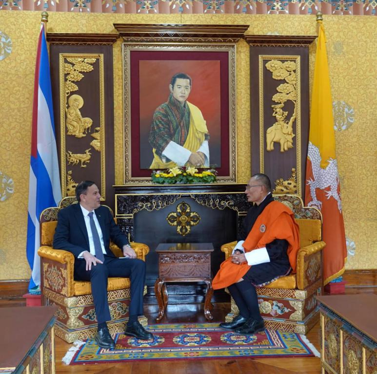 As part of the visit, the Cuban diplomat had a fruitful exchange with His Excellency Mr. Tshering Tobgay, Prime Minister of the Kingdom of Bhutan, sharing ideas to promote political, economic and collaborative relations, in the year marks the 15th anniversary of bilateral diplomatic relations. Meeting with the Chancellor, Mr. Lyonpo D.N. Dhungyel, the Ambassador thanked that country’s historical support for the Cuban resolution condemning the economic, commercial and financial blockade of the United States against the Cuban people, which is presented every year at the General Assembly of the United Nations. Both sides reaffirmed their willingness to strengthen bilateral and multilateral cooperation links. In the exchange with Mr. Lyonpo Namgyal Dorji, Minister of Industry, Trade and Employment, assessed the potential to boost collaboration in health, biotechnology, sports and traditional products, among other sectors, in particular taking advantage of the opportunities offered by the Special Administrative Region "Gelephu Mindfulness City" (GMC), which express the King’s vision to boost and consolidate the development of Butan as a nation. It is an autonomous project (www.gmc.bt).