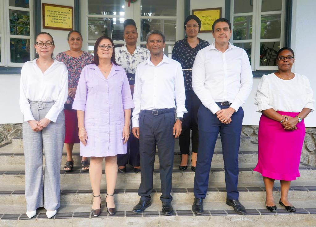 Also present at the meeting were Minister of Foreign Affairs and Diaspora Mr. Barry Faure, Principal Secretary of Foreign Affairs and Diaspora Mr. Ian Madeleine, Director of Bilateral Affairs Ms. Lindy Ernesta, and Desk Officer Ms. Elsa Lepathy. (EmbaCuba Seychelles)