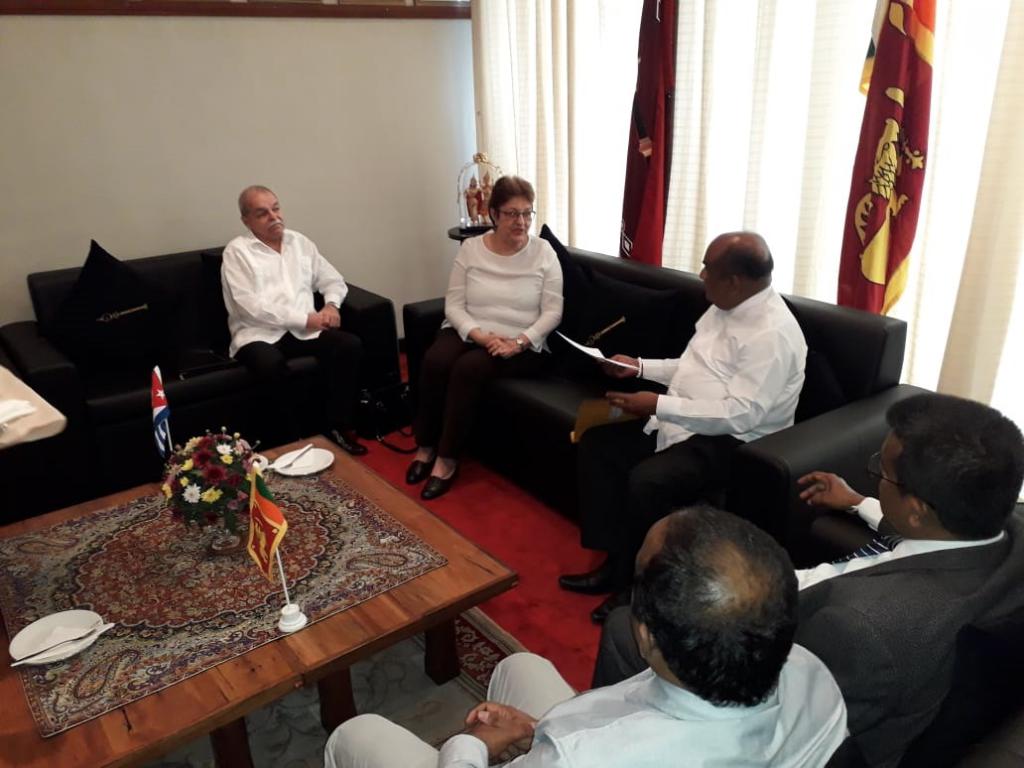Likewise, the Ambassador delivered to Hon. Abeywardena a congratulatory message by the President of the National Assembly of People's Power of Cuba, Esteban Lazo Hernández, for his election as President of the Parliament of Sri Lanka.