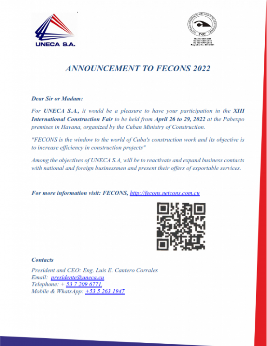 ANNOUNCEMENT OF THE INTERNATIONAL CONSTRUCTION FAIR 2022
