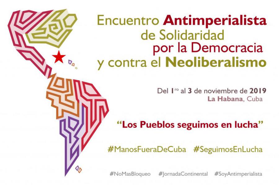 The Anti-imperialist Meeting of Solidarity, for Democracy and against Neoliberalism will take place in Havana from November 1 to 3 of this year, organized by the Cuban Institute of Friendship with the Peoples (ICAP), Central Organization of Cuban Trade Unions (CTC), along with the Cuban Chapter of Social Movements and the Continental Conference for Democracy and against Neoliberalism.