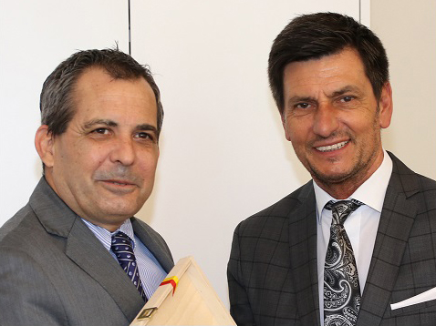 In the meeting with Mr. Heinz Josef Zitz, President of the Council of Schools of the region, they assessed the execution of the existing projects between Cuba and Burgenland in the educational sector. Likewise, they made some proposals for their continuity, basically focused on the project between the middle schools of both countries: Juan Borrell Pre-university Institute of Güines and the School of Commerce of Eisenstadt regarding the exchange between students and professors.