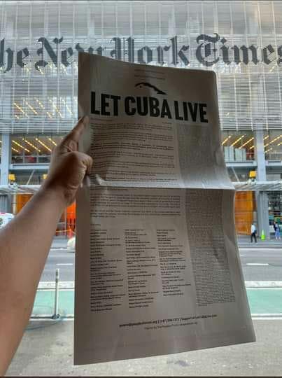 Let Cuba Live (Let Cuba Live!) Reads the sentence at the top of the petition formulated in a full-page letter this Friday in the influential American newspaper The New York Times.