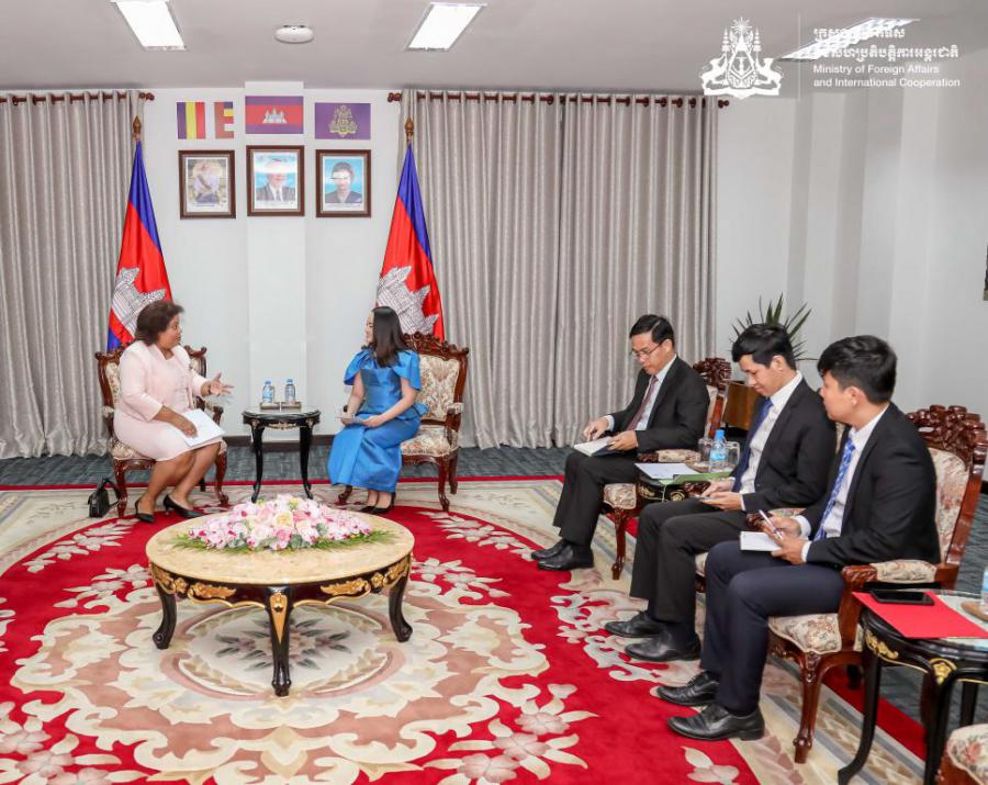 On 16 November 2023, Her Excellency Yentieng Puthirasmey, Secretary of State of the Ministry of Foreign Affairs and International Cooperation, cordially received Her Excellency Liurka Rodriguez Barrios, Ambassador of the Republic of Cuba to the Kingdom of Cambodia. Both sides discussed the ways to further strengthen the cooperation between the two countries.