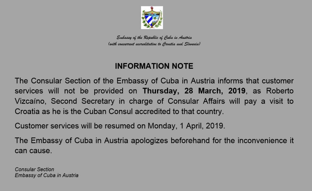 Closing of the Consulate March 28, 2019