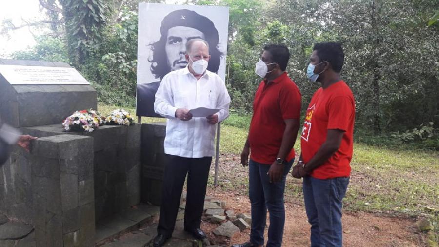 On behalf of the Ambassador of Cuba Andrés Marcelo Garrido in the company of Eranga Gunasekara and Anjana Samith Amarasinghe, National Organizer and Secretary of International Relations respectively of the Union of Socialist Youth of Sri Lanka (SYU), floral arrangements were deposited in the plaque that recalls Che's presence in the place.