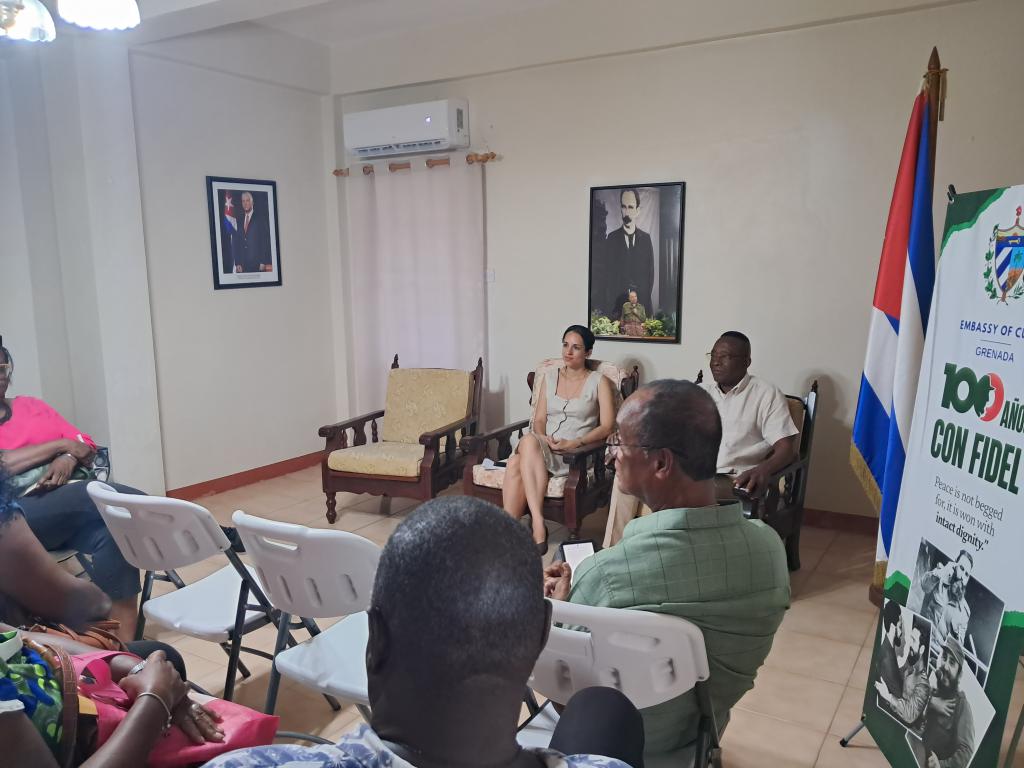 A meeting was held at the Cuban Embassy in Grenada between officials from the diplomatic mission and members of the Committee of Graduates in Cuba, led by Ambassador Yadirys Echenique Paz, Consul Ariel Pazos Ortiz, and the Committee’s coordinator, Malachy Dottin.