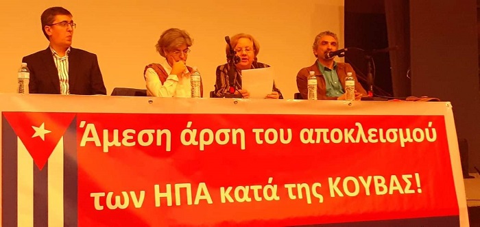 Athens, 27 November. The Jose Martí Cultural Association of solidarity with Cuba organized an event to condemn the unfair economic, commercial and financial blockade of the United States against Cuba, in the Cinema theater "Studio" of the company New Star Art Cinema of the friends of Cuba Velisarios Kossivakis, in what his wife the Cuban resident Leticia Suarez also helped. At the event took the floor, Kostas Sanidas of the Association, the Cuban Ambassador Zelmys María Dominguez Cortina, and the moderator was George Mehrabian of the association.