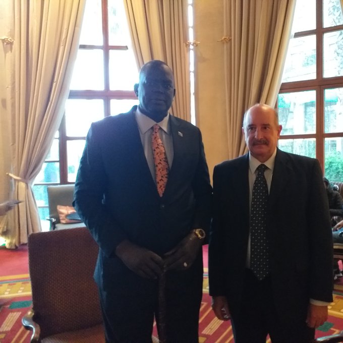 Addis Ababa, June 22, 2022. - The Cuban Ambassador to Ethiopia Jorge Lefebre Nicolás, held a meeting with the Deputy Foreign Minister of South Sudan, Deng Dau Deng Malek, during his visit to Addis Ababa. They exchanged on the world situation and the challenges facing the economies of both countries, which in the case of Cuba is further intensified by the strengthening of the US blockade of Cuba in the current circumstances.