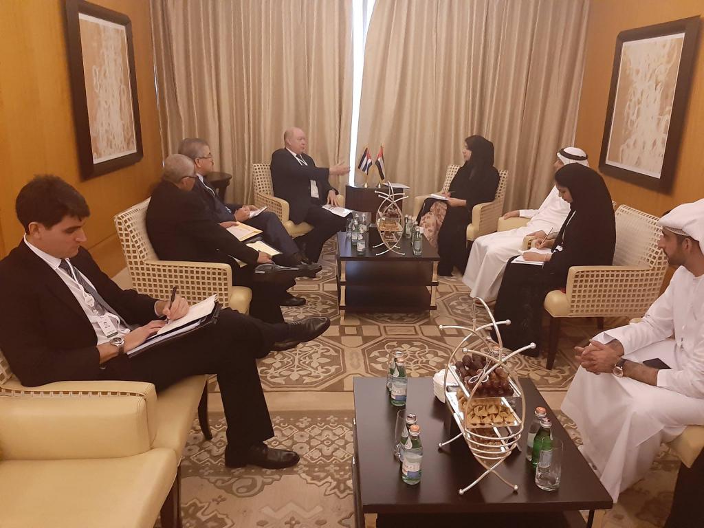 The Minister of Foreign Trade and Foreign Investment, Rodrigo Malmierca Díaz, held a working meeting with the Minister of State for International Cooperation, Ms. Reem Al Hashimy, in the framework of the celebration of the First United Arab Emirates Cooperation Forum and the Caribbean, which takes place from 24 to 26 November in Dubai.