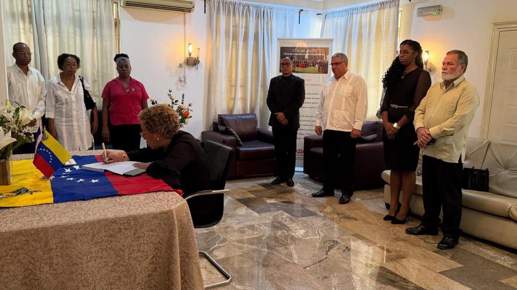 Representing Venezuela were the Chargé d’Affaires a.i., Mr. Álvaro Guzmán, and the Minister Counsellor, Mr. Luis Ernesto Pineda, who received the Cuban delegation in an atmosphere of deep respect and solemn reflection.