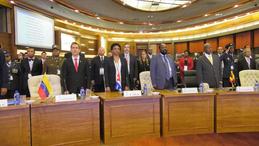 In the morning's working session, the Cuban Vice President held numerous bilateral exchanges, among which the talks with the Minister of the Presidency of South Africa, with the presidents of Namibia, Zimbabwe, Uganda and the Saharawi Democratic Arab Republic; also with the Prime Minister of Lesotho; the vice presidents of Angola and Seychelles; and, the Minister of Foreign Affairs of Namibia, South Africa and Venezuela.