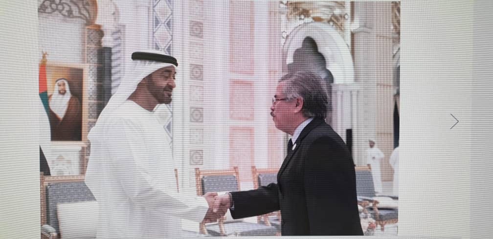 His Highness, Sheikh Mohamed Bin Zayed Al Nahyan, Crown Prince of Abu Dhabi and Deputy Supreme Commander of the Armed Forces of the United Arab Emirates receives the congratulations of the Head of the Cuban Diplomatic Mission for the beginning of Ramadan.