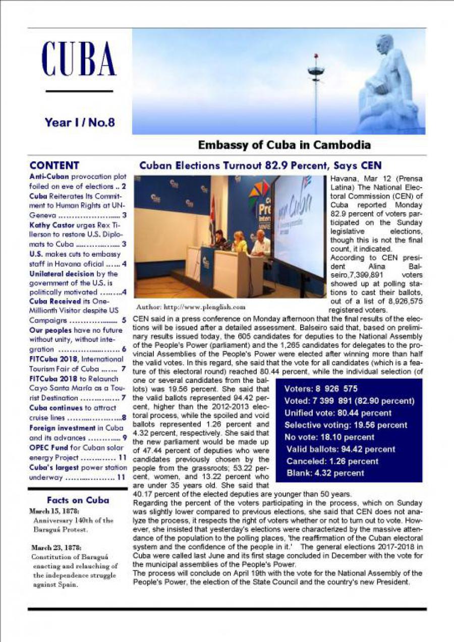 Mar132018 The Embassy of Cuba presents its Current Affairs publication issue No. 8, which contains updated information on Cuba.Etiquetas: #Cuba #PorCuba#ALBA-TCP; #ALBAUnida; #Cuba; #VenezuelaNoEstáSola; #NoalaInjerenciaExterna; #NuestraAmérica; #SeguimosEnLucha; #FidelPorSiempre; #ChávezVive; #DeclaraciónArchivos: currentaffairsno-viii.pdfCategoría: BloqueoCooperaciónEventosMultilateralesSolidaridad