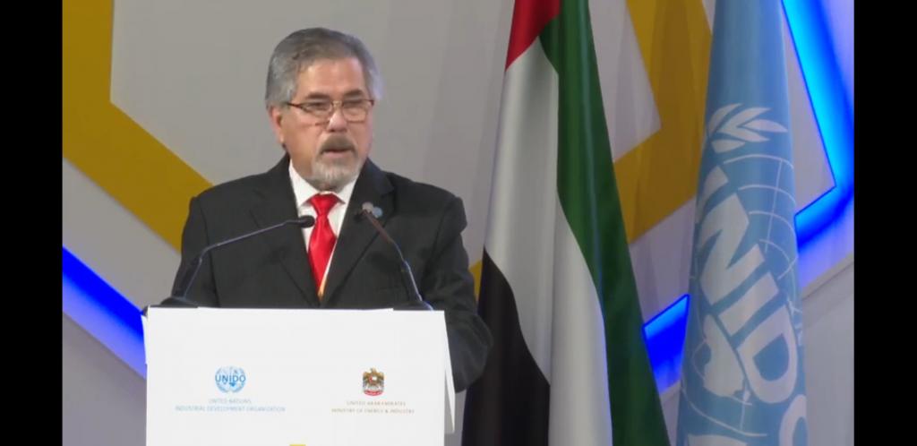 The Cuban diplomat in his speech stressed that the Abu Dhabi Declaration adopted today marks an important milestone for UNIDO; reiterates our commitment to the Sustainable Development Goals; reaffirms our commitment to the Organization, as a specialized agency of the United Nations that has the mandate to promote international industrial cooperation and inclusive and sustainable industrial development; and, in addition, it addresses an issue of extraordinary relevance: the urgency for states to refrain from promulgating and unilaterally applying economic, financial or commercial measures that are not compatible with international law and the Charter of the United Nations, measures that prevent the full achievement of economic and social development, particularly in developing countries ...