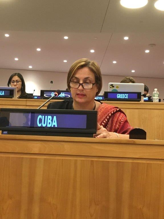 New York, 24 October 2018.In the debate on Item: Permanent Sovereignty of the Palestinian People in the Occupied Palestinian Territory, including East Jerusalem and the Arab population in the occupied Syrian Golan over their natural resources, of the United Nations Second Committee, Rosalia Cúe Delgado, Second Secretary at Permanent Mission of Cuba to the UN, highlighted how Israel deprives the Palestinian people of their right to development by stripping them, among other things, of the sovereign right over their natural resources. This, she added, has been shown in the report submitted by the Secretary-General in this regard, which confirms that the 51 years of Israeli occupation have had a detrimental effect on the social and economic development of the population in the Occupied Palestinian Territory, including East Jerusalem and of the Arab population in the occupied Syrian Golan.