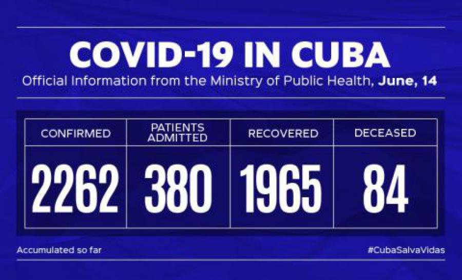 Havana, June 13, 2020-- The National Director of Epidemiology of the Cuban Ministry of Public Health, Dr. Francisco Duran, reported that there were 5 new cases detected of COVID-19, for an total of 2,238 positive cases across the island.