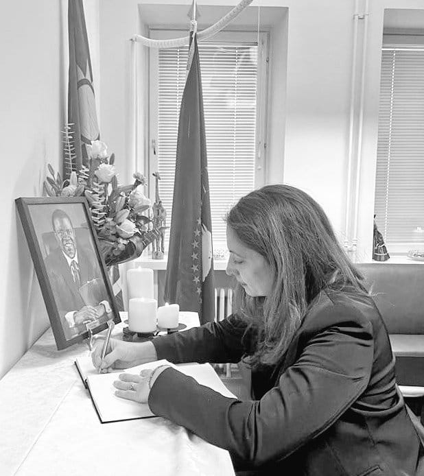 Helisnki, February 10, 2024.- Ambassador Beatriz Parra González came to honor the great friend of Cuba the President of Namibia, His Excellency Dr. Hage Gotfried Geingob, at the Embassy of this country in Finland.