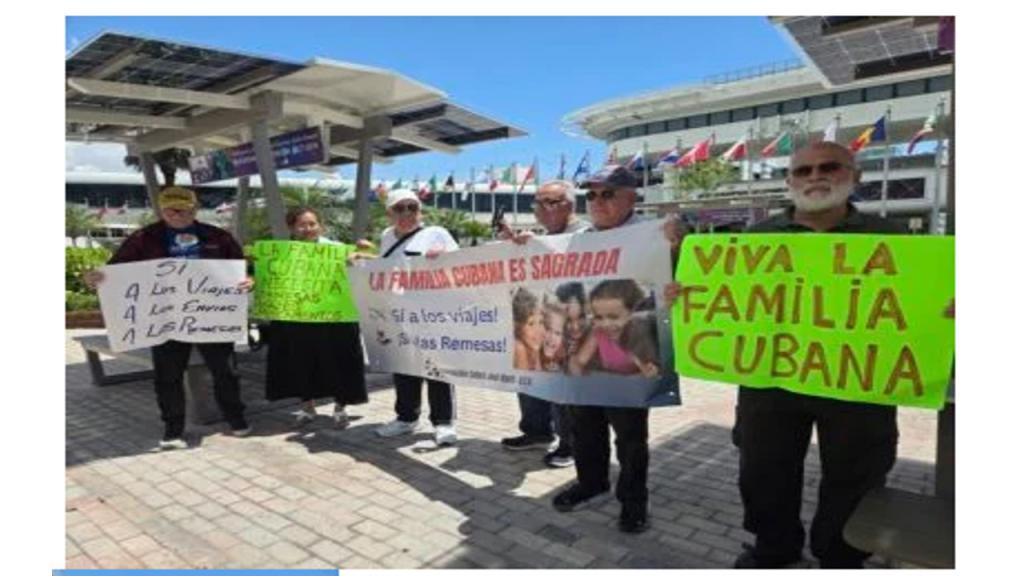 This Sunday, April 26, a group of Cubans living in the United States gathered at the Plaza of the Flags at Miami International Airport to send a loud and clear message: No military aggression against Cuba by the United States—yes to dialogue and talks between both governments. No more blockades; yes to travel and remittances for Cuban families.