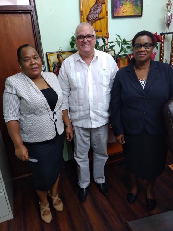 Roseau January 31, 2020. The Cuban Ambassador to the Commonwealth of Dominica, Ulises Arranz Fernández, held a meeting today, January 31, 2020, with the Minister of Education, Human Resource Planning, Vocational Training and National Excellence, Honourable Octavia Alfred, at the headquarters of that Ministry. The Permanent Secretary, Chandler Hyacinth, was also present at the meeting. The meeting is part of what the cuban diplomat has been developing with the Ministers of the new cabinet of Prime Minister Roosevelt Skerrit, to discuss issues of mutual interest in bilateral relations.