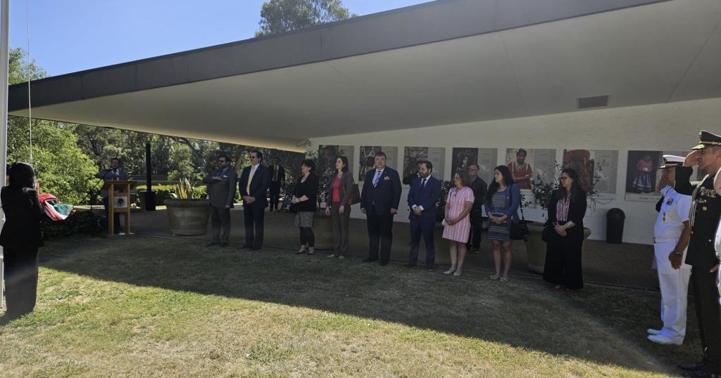 Canberra, 17 December 2025. The Ambassador of the Republic of Cuba to Australia, Gilma Moreira Lino, participated today in the raising ceremony of the Mexican national flag on the new flagpole installed in the gardens of the Mexican Embassy in Canberra.
