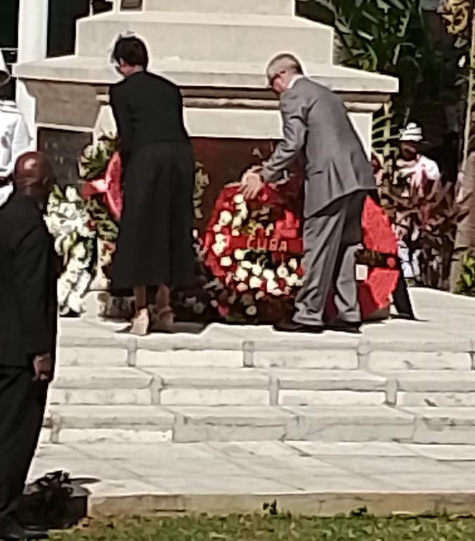 Nassau, November 9, 2025. The Cuban Ambassador to the Bahamas, Julio César González Marchante, participated in the activities organized by the Bahamian government to commemorate those who died during the two World Wars. Among these activities, he laid a wreath at the monument erected in their memory.
