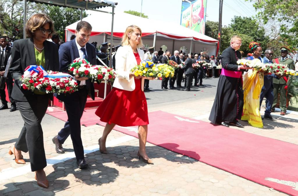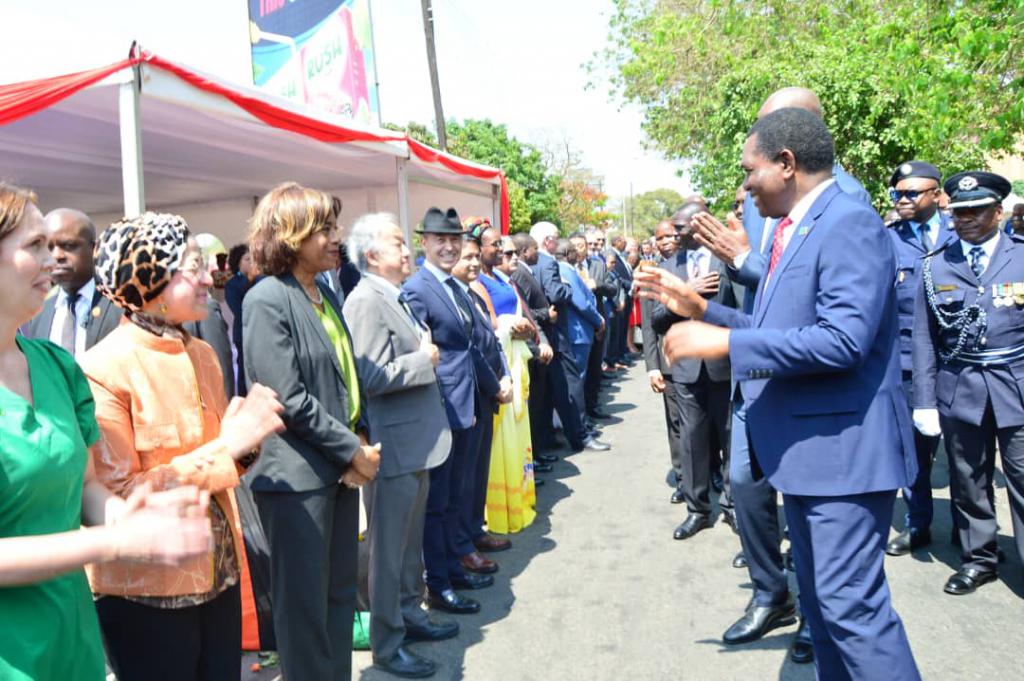 Lusaka, October 24, 2025. On the occasion of the official activities commemorating the 61st anniversary of Zambia's independence, the Cuban Ambassador to Zambia, Marileydis Dueñas Morales, had the opportunity to greet and briefly exchange views with the President of Zambia, accompanied by his Guest of Honor at this honorable ceremony, the President of Mozambique, H.E. Daniel Chapo.