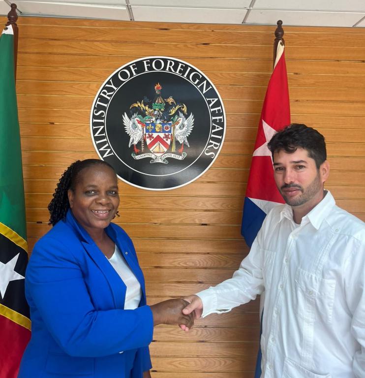 Ambassador Giuvel Orozco Ortega held a courtesy meeting with Ms. Kaye Bass, Permanent Secretary of the Ministry of Foreign Affairs, after presenting the Letter of Credentials that accredit him as the new Cuban representative to the Federation of Saint Kitts and Nevis.