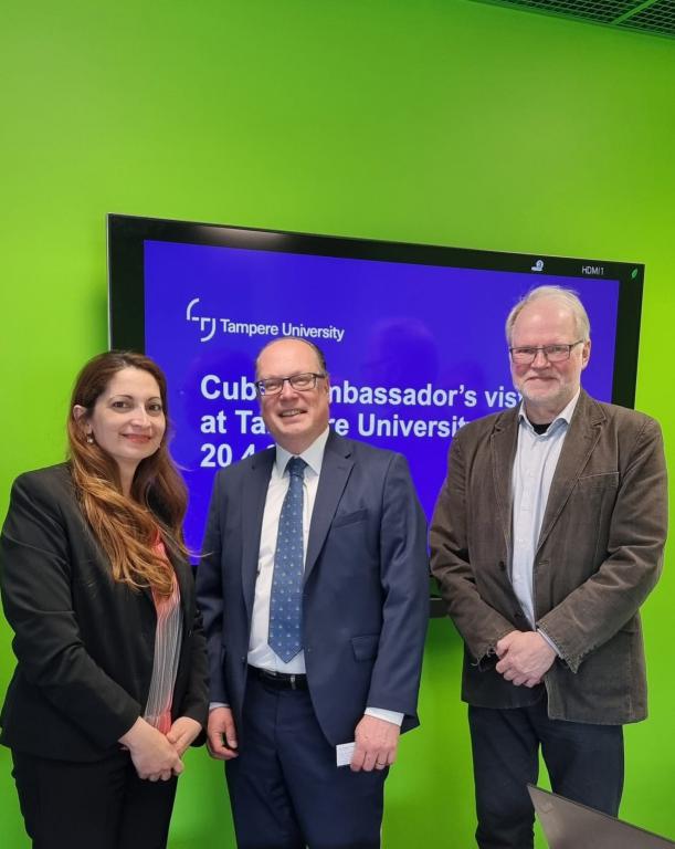 During her visit, Cuban diplomat had a nice metting with the Vice Rector for Research of Tampere's University, Mr. Tapio Visakorpi. Both aurhorities discussed interesting academic exchange opportunities for Cuba and Finland.