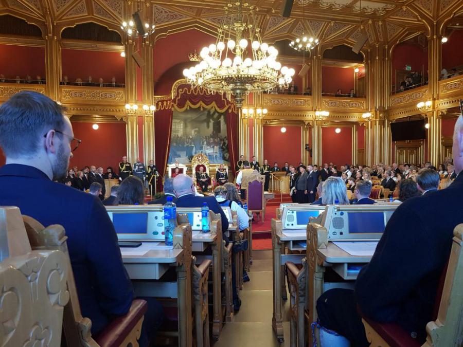 Tore O. Sandvik, member of the Government as current Minister of Climate and Environment, had the responsibility of reading the State of the Realm Address, which was then presented to His Majesty the King by the Head of Government.
