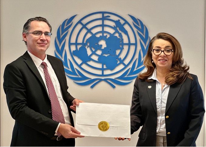 Vienna, April 11, 2023 - Cuban Ambassador Pablo Berti Oliva presented to Her Excellency Ms. Ghada Fathi Waly, Director-General of the United Nations Office at Vienna, the Letters of Credence accrediting him as Permanent Representative of the Republic of Cuba to the United Nations Office at Vienna.