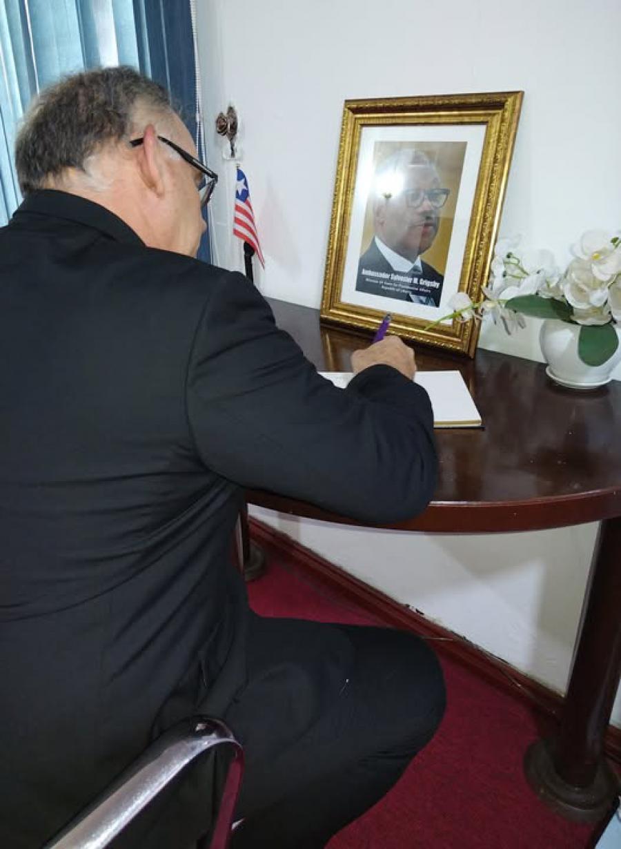 Accra, 20 August, 2025. – The Ambassador of the Republic of Cuba, Julio E. Pujol, attended the signing of the Book of Condolences opened at the Embassy of Liberia in Ghana's capital on the occasion of the death of Ambassador Sylvester M. Grigsby, former Minister of State for Presidential Affairs and former Acting Minister of Foreign Affairs of the Republic of Liberia.