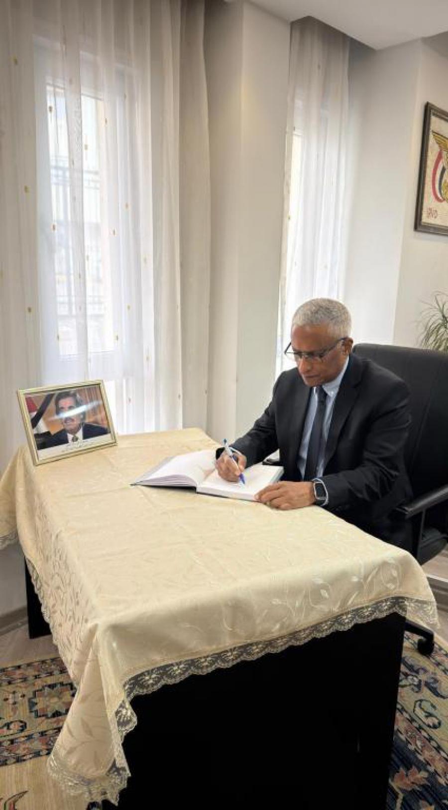 The Cuban Ambassador to Türkiye, Alejandro Díaz Palacios, visited the Embassy of Yemen to sign the book of condolences for the death of Ali Salem Al-Beidh, former Vice President of the Presidential Council.