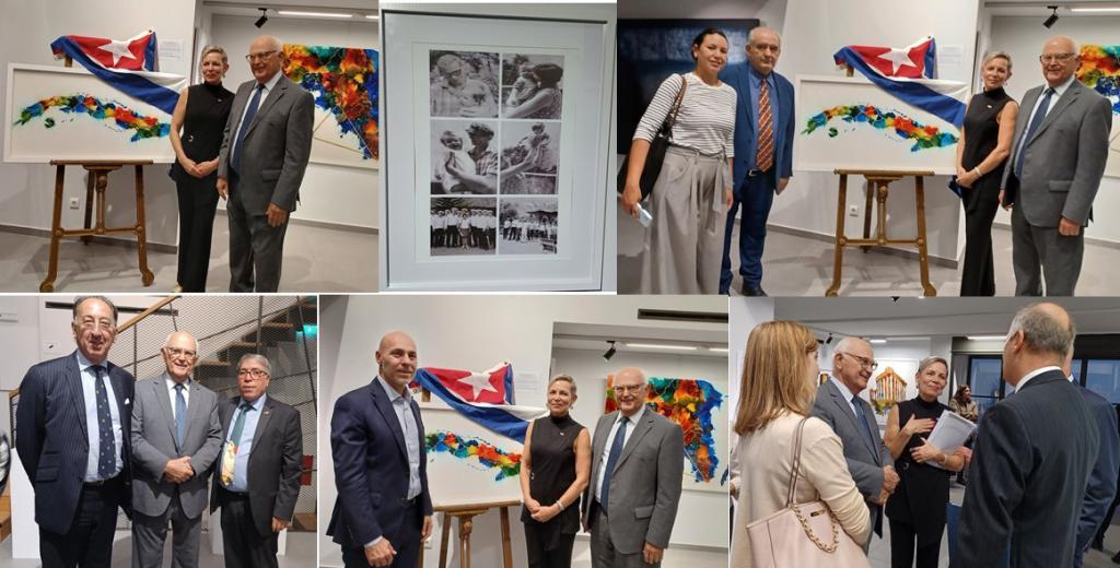 The painter Svetlana Booth donates one of her works to the Embassy As part of the activities in honor of the Cuban Culture Day, an emotional event, well attended, took place at the "Project" Art Space Gallery, which highlighted by the presence of artists, intellectuals, diplomats, entrepreneurs, and other figures. Also there were the President of the Parliamentary Group of Friendship with Cuba, member of Parliament George Amyras; the Director of North America, South America, and the Caribbean in the Ministry of Foreign Affairs, Mr. Loukas Karatsolis; and other officials of this body. The event, organized jointly by the Gallery and the Cuban Embassy, was endorsed by other entrepreneurs and friends. The painter Svetlana Booth offered to the Ambassador Aramís Fuente Hernández a painting called "Cuba my own beginning," which is an homage, according to her words, to "the sparkled island where I was born," and its rhythm, color, and warmth have not parted from her. In her warm and emotional words, the renowned artist of Russian descent, who was born in Cuba and now lives in Greece, recalling that she had recently found her birth certificate through some Cuban friends, said: ´´Holding it in my hands, I realized that something inside me had become a perfect circle. I understood the meaning of the Cuban soul, the soul of Cuba, and what it means to be a daughter of Cuba who returns: a daughter of Cuba who finds her way back, not through distance, but through memory, gratefulness, and love." “The painting I offer tonight, ‘My Own Beginning,’” the artist asserted, “is more than an image of an island; it is visible memory, emotion transformed into form. It bears the colors and pulse of the place where I began, bright and vivid. By donating it today, in commemoration of the Cuban Culture Day, I honor my roots and celebrate the golden thread that links Havana and Athens, Cuba and Greece.” In heartfelt words, the Ambassador thanked all those who made this homage possible, and especially Svetlana for her beautiful gesture and her immaculate love for the land of her birth and which continues to consider her as a true and faithful daughter. Similarly, underlined the significance of the Cuban Culture Day, which commemorates the date on which the Cuban national anthem was sung for the first time. The Chilean poet, Jaime Svart read a poem of his authorship dedicated to the Commandante en Jefe, Fidel Castro, in the context of the commemorative day of the centenary of his birth. Members of the Cuban community living in Greece also attended the event and the Cuban singer Ismaray Hernández Kessell delighted the attendants with beautiful melodies from the cuban musical heritage.
