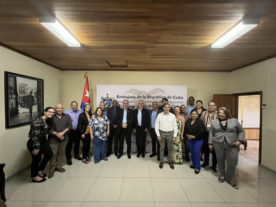 Pretoria, March 27, 2023.- The Cuban deputy minister of Foreign Affairs, Elio Rodríguez Perdomo, accompanied by the Director for Sub-Saharan Africa of the Foreign Ministry, Luis Alberto Amorós, held a meeting with the members of the Cuban State Mission in South Africa. Collaborators from the different brigades that work in the country participated, as well as the embassy staff.