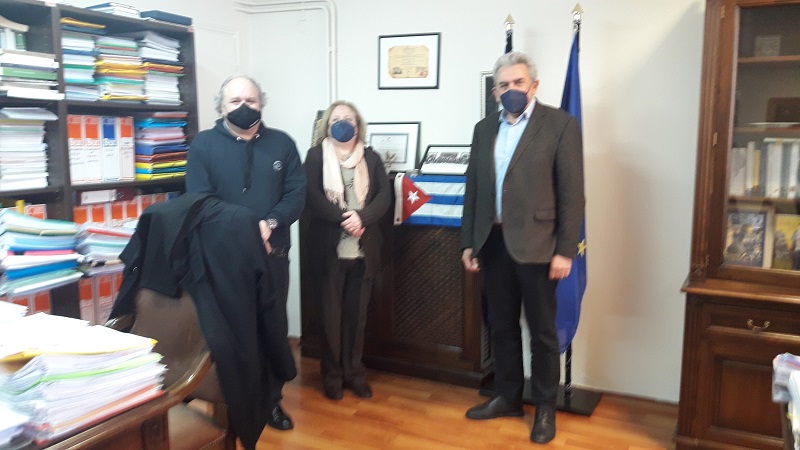 On February 16, the rector of the University of Ioannina Triantafylos Albanis, received in his office the Cuban ambassador to Greece Zelmys Maria Dominguez Cortina and the counselor José Oriol Marrero Martinez. He was accompanied by leaders of the Association of Administrative Staff of the University of Ioannina. It was discussed the current situation in Cuba, the blockade, Cuba's achievements in Education, Health and Science, the confrontation with the pandemic, as well as other aspects of interest in the Cuban reality. On his part, the Rector presented the university and highlighted his love and admiration for the Cuban people.